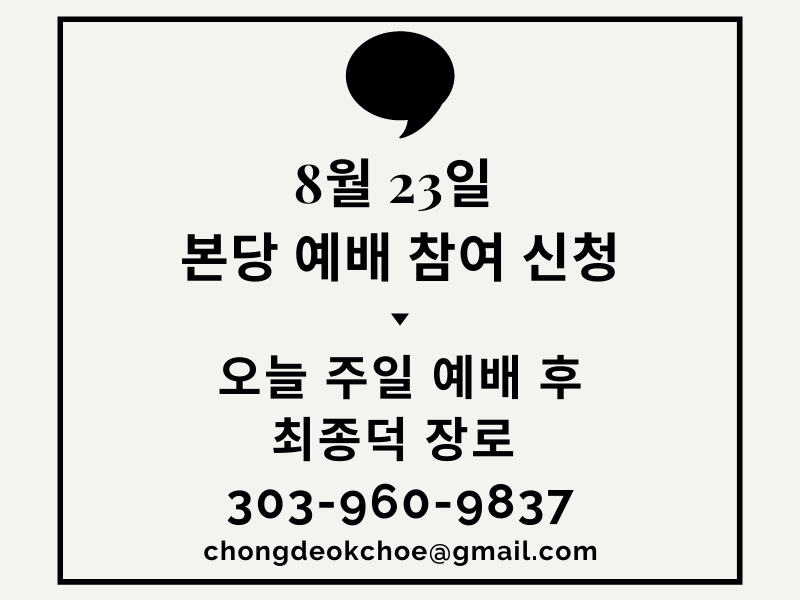 2020년 8월 16일 교회소식