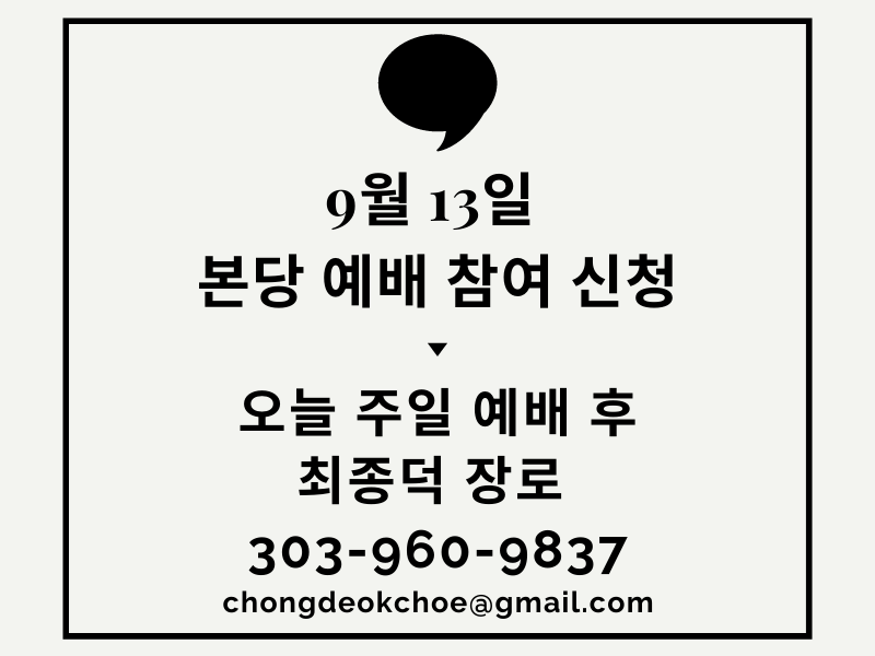 2020년 9월 6일 교회소식