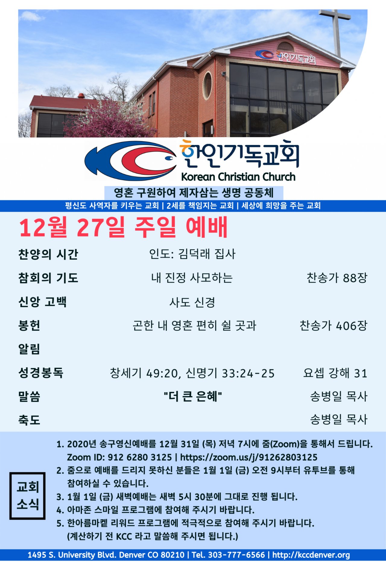 2020년 12월 27일 교회소식