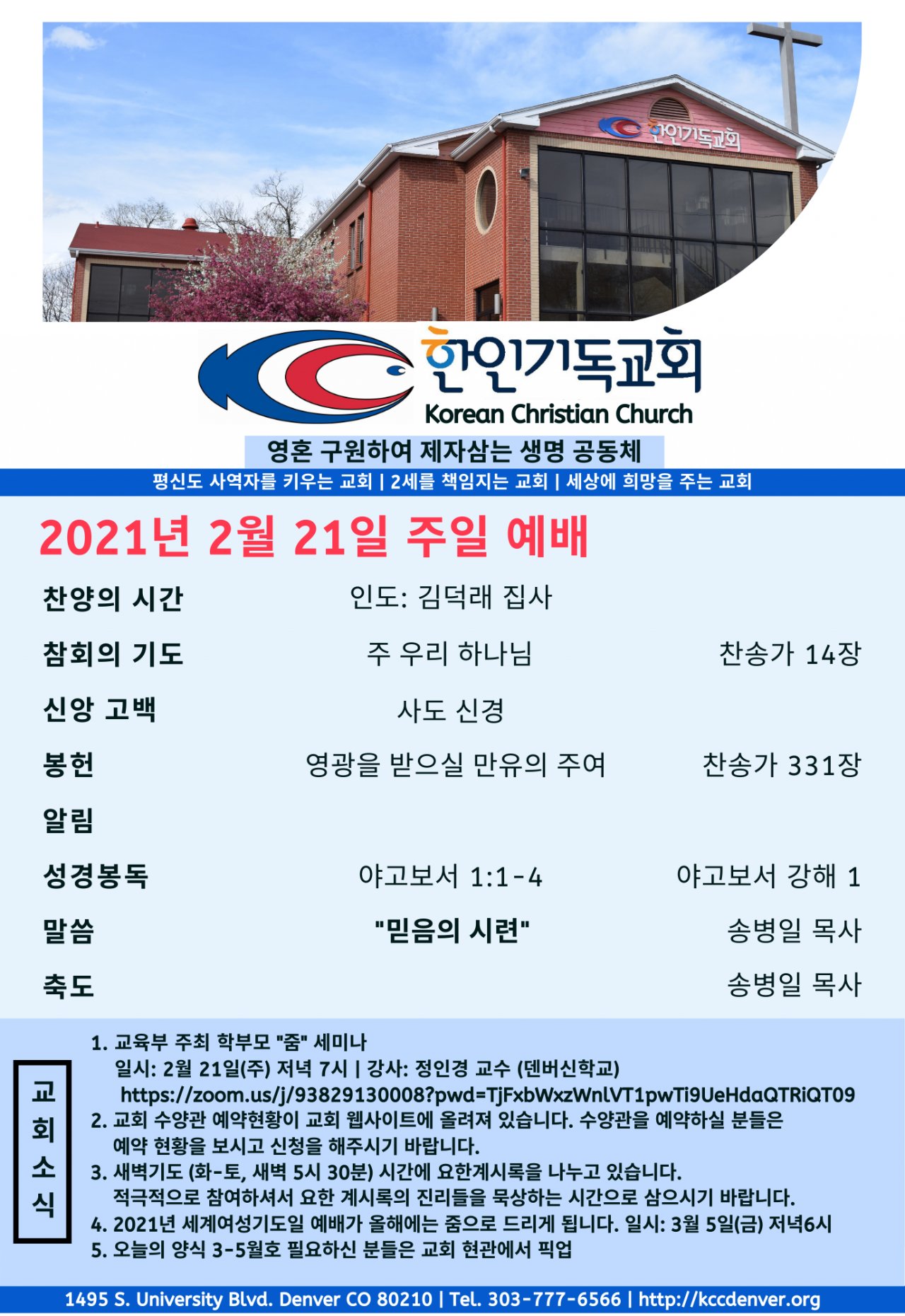 2021년 2월 21일 교회소식