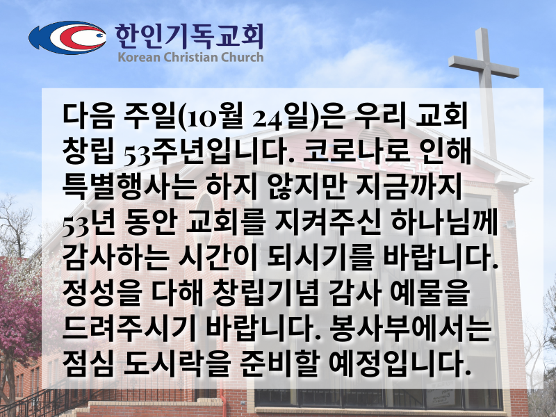 2021년 10월 17일 교회소식