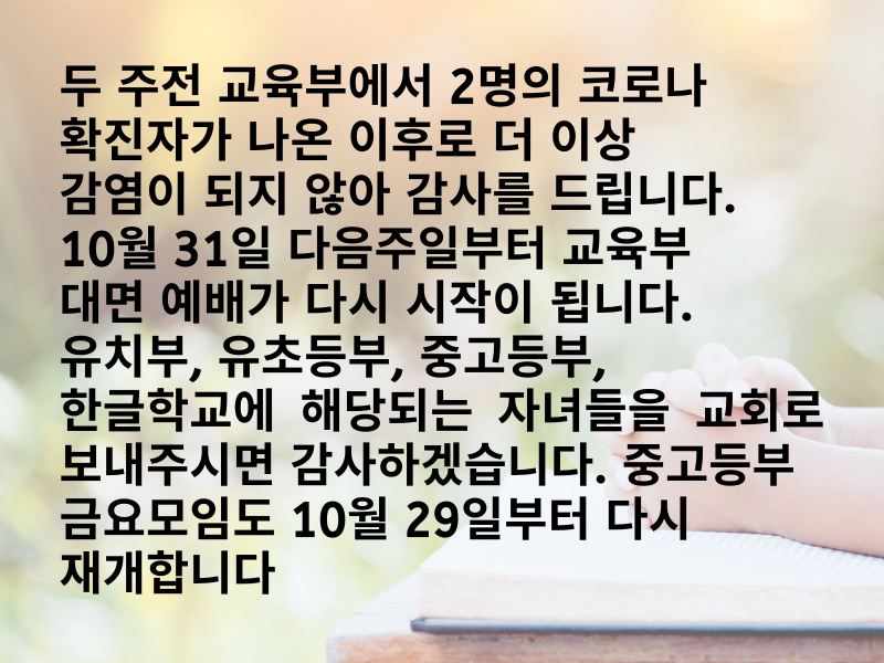 2021년 10월 24일 교회소식