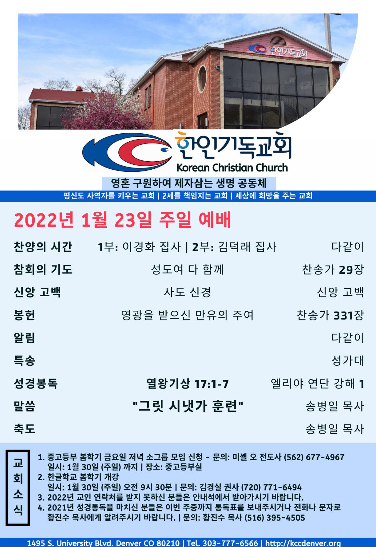 2022년 1월 23일 교회소식