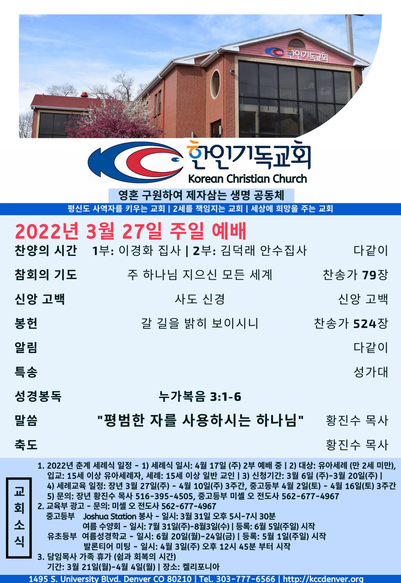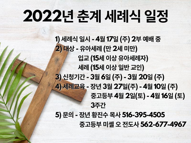 2022년 3월 27일 교회소식