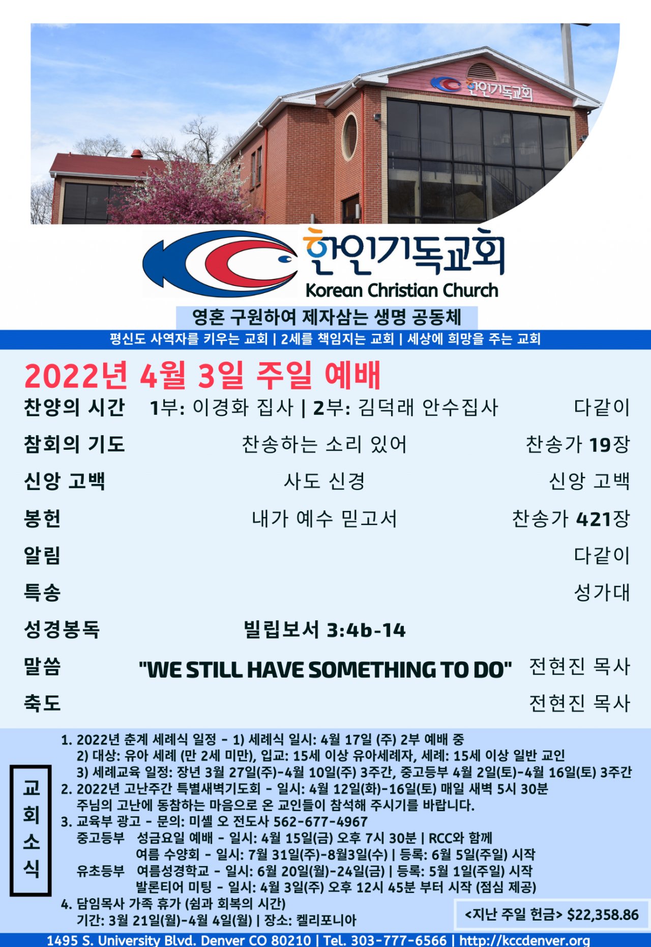 2022년 4월 3일 교회소식