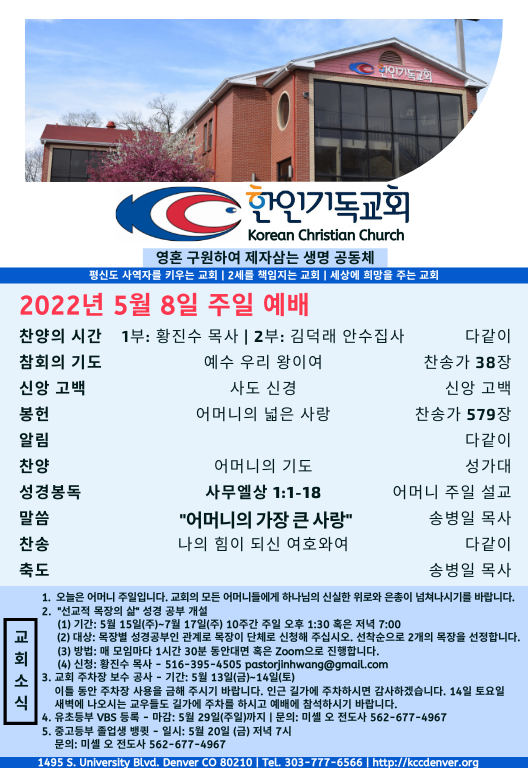 2022년 5월 8일 교회소식