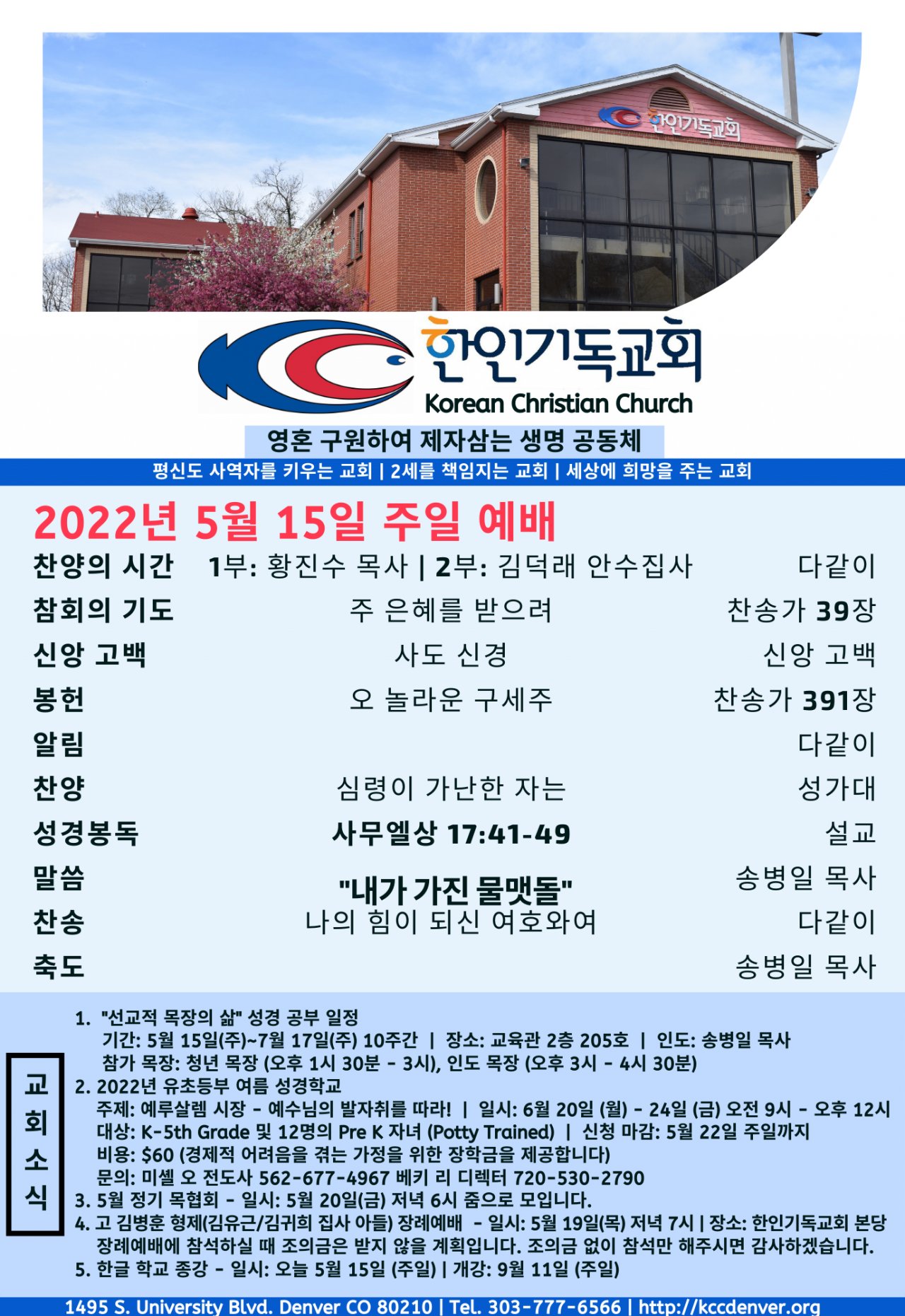 2022년 5월 15일 교회소식