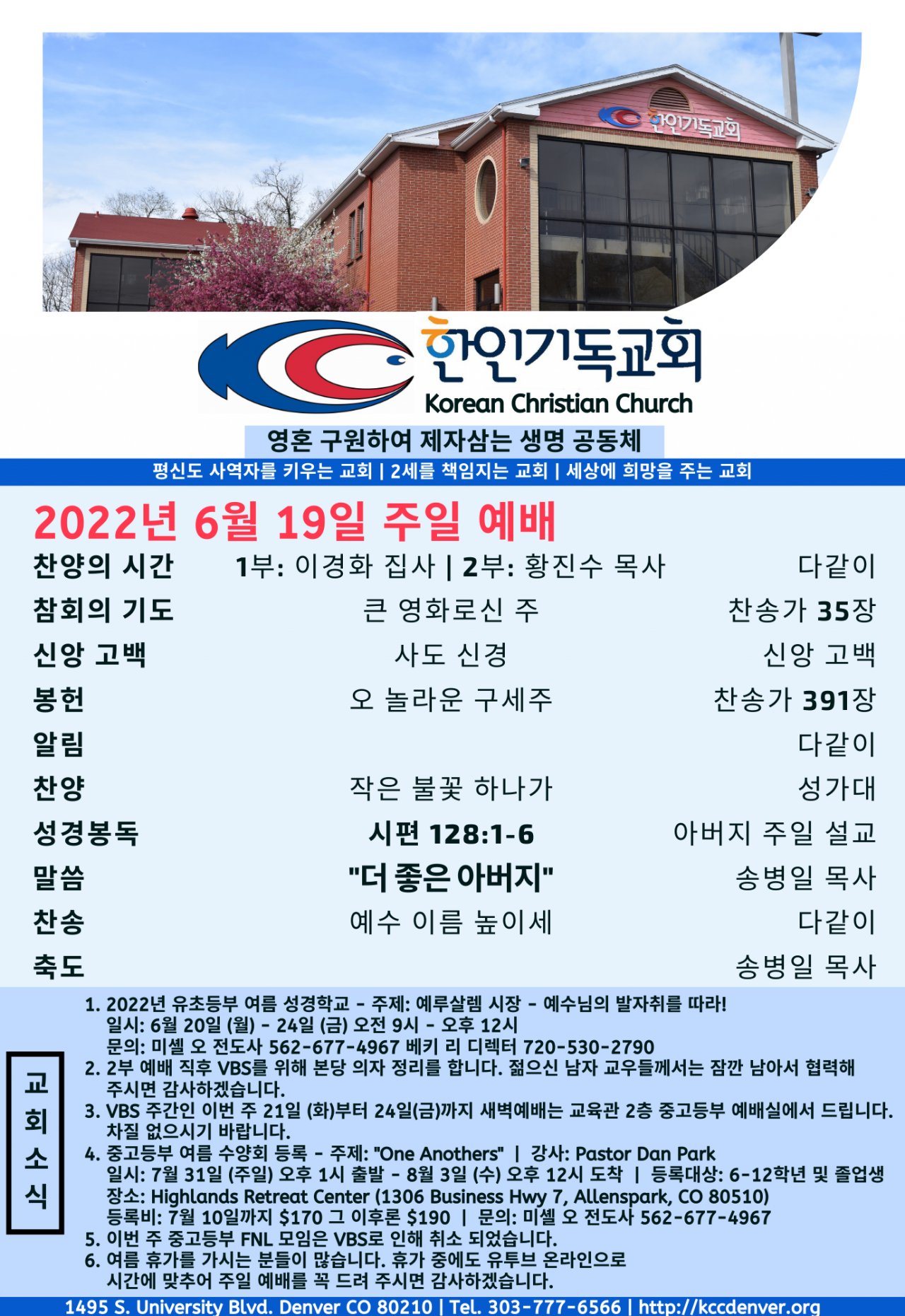 2022년 6월 19일 교회소식