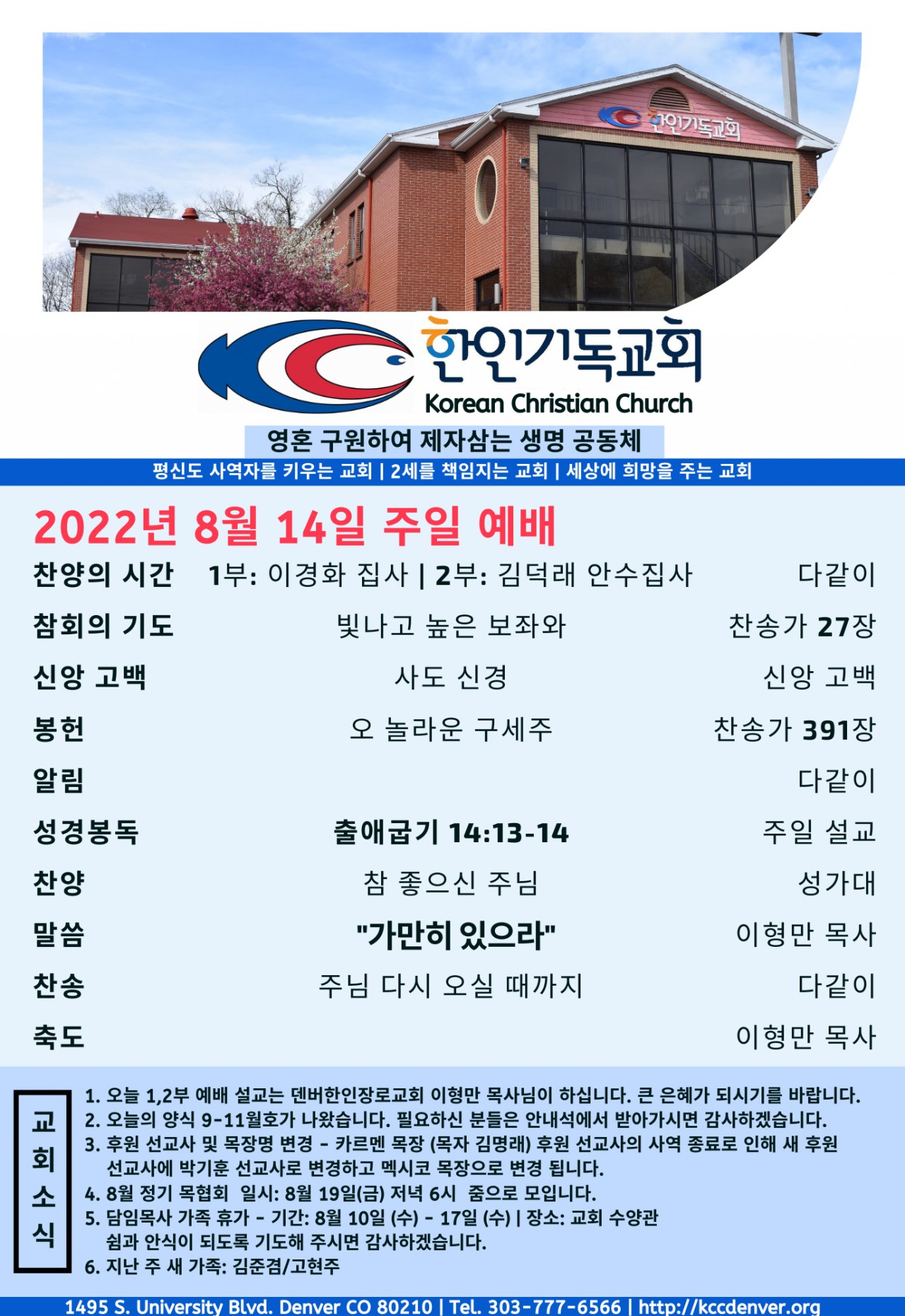 2022년 8월 14일 교회소식