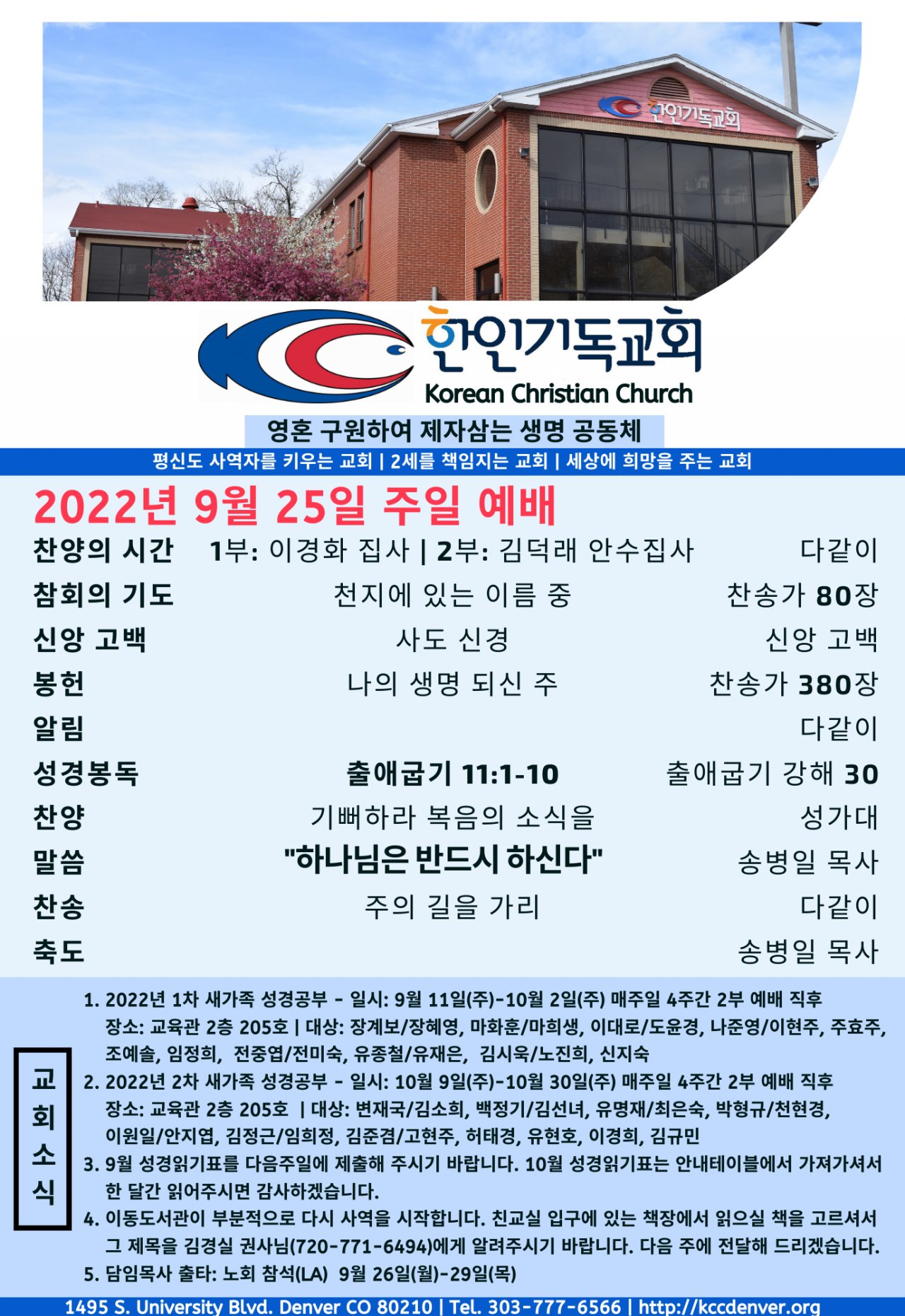 2022년 9월 25일 교회소식