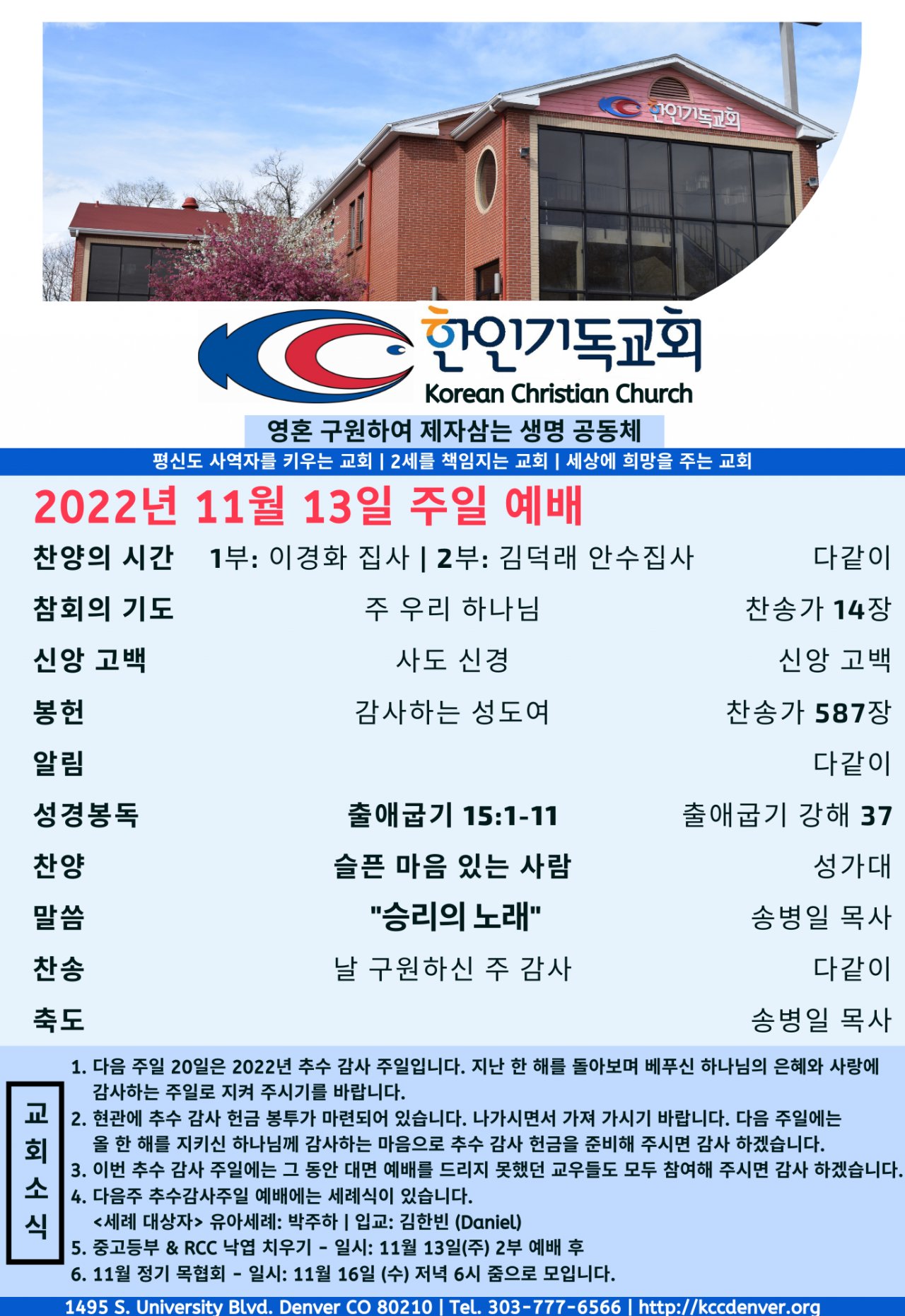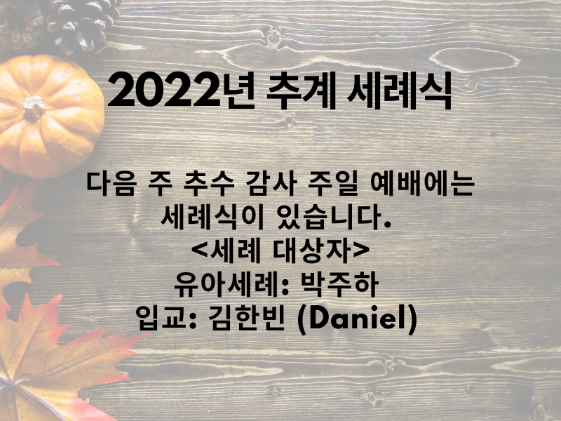 2022년 11월 13일 교회소식