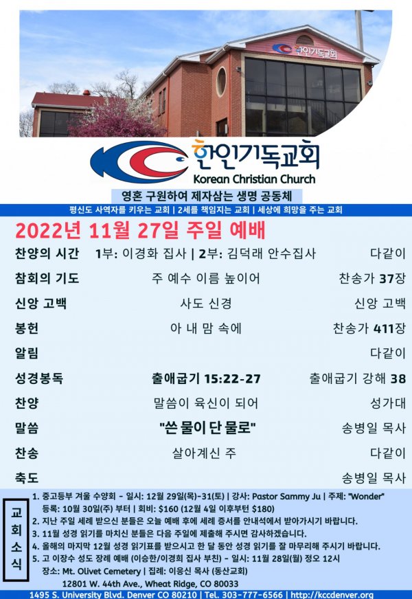 날짜: 2022.11.27 글쓴이 : KCC | 교회소식