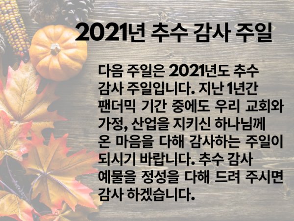 날짜: 2021.11.21 글쓴이 : KCC | 교회소식
