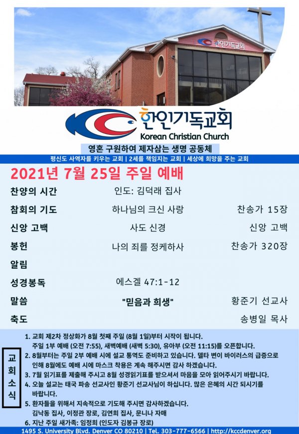 날짜: 2021.07.25 글쓴이 : KCC | 교회소식