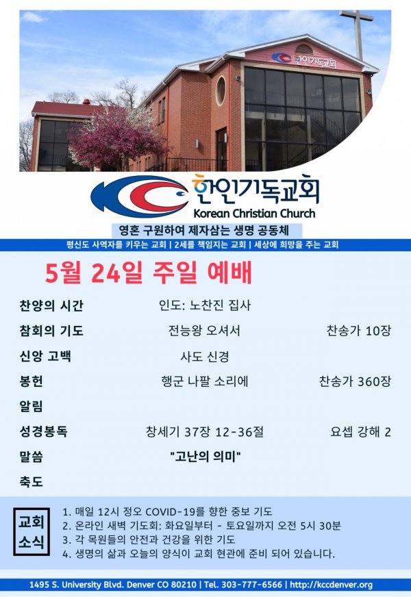 날짜: 2020.05.24 글쓴이 : KCC | 교회소식