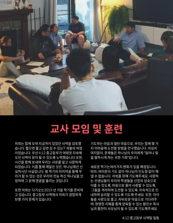 2019년 8월 - 4:12 중고등부 가정통신문