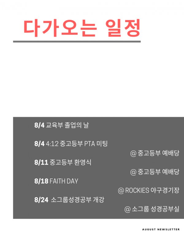 2019년 8월 4일 교회소식